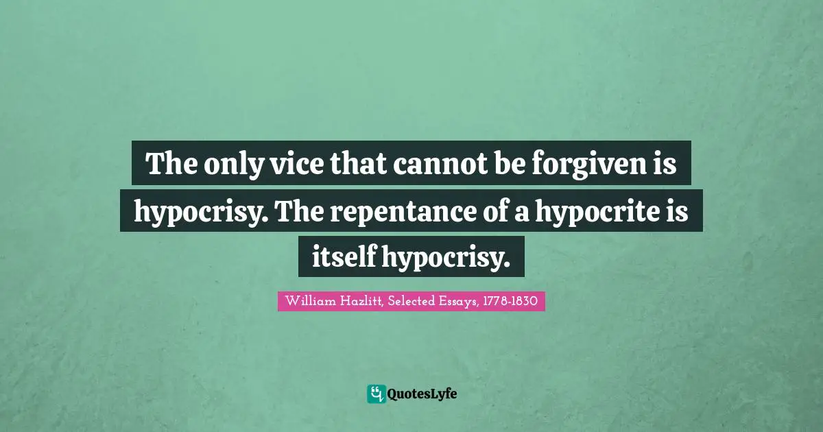The Only Vice That Cannot Be Forgiven Is Hypocrisy The Repentance Of Quote By William Hazlitt Selected Essays 1778 10 Quoteslyfe